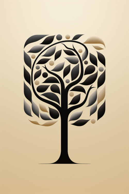 Flat geometric vector graphic logo of a tree in a field with a simple and minimalist design by Ivan Chermayeff.
