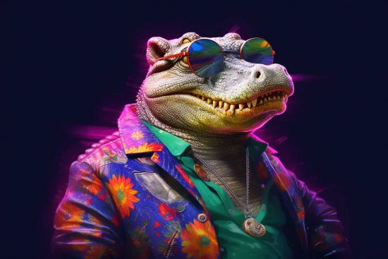 Unique illustration of a pig and crocodile in gangsta style at a fun party.